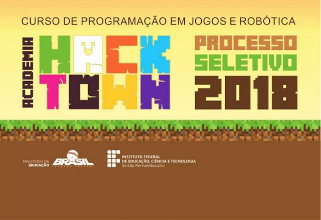 O Instituto Federal de Educação, Ciência e Tecnologia do Sertão de Pernambuco (IF Sertão-PE) abriu as inscrições do processo seletivo para cursos de Programação em Jogos e Robótica da Academia Hacktown, na modalidade de Formação Inicial e Continuada (FIC), para os campi Petrolina, Floresta e Salgueiro. No total são 360 vagas para candidatos que estejam regularmente matriculados a partir do ensino fundamental, prioritariamente em escolas públicas.