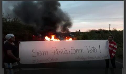 Munidos de faixas e palavras de ordem como “Sem Pista. Sem voto”, os moradores iniciaram o movimento antes das 6h e se prolongou até o fim do dia. Eles atearam fogo em objetos, interditando a passagem de veículos no local. Grande Rio FM