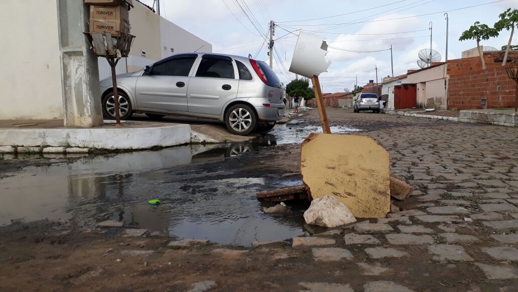 Preocupada com o trânsito de veículos e pessoas no local, a população sinalizou o buraco com um pedaço de madeira. Por causa da longa extensão, o esgoto forma até mesmo correntezas de água suja, propagando mal cheiro e insetos por grande parte da localidade. A Maria das Dores da Conceição, por exemplo, está com o esgoto retornando para as tubulações de casa e não sabe mais o que fazer para diminuir o problema. Ela teve que fazer um canal próprio para que a água pudesse circular e não adentrasse a residência dela. “A água tá saindo no banheiro e no muro. Não é água não, é merda mesmo. A gente não tem uma pessoa responsável pelo bairro. Aqui não tem presidente de bairro”, desabafou.