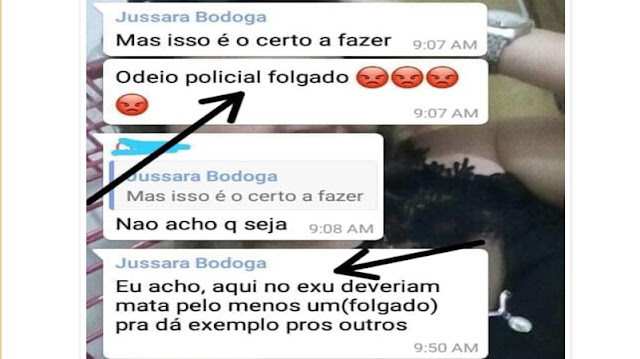 A Guarnição Tática de Exu conduziu até DPC local Jussara Vanessa Bezerra de Viveiros, 31 anos, por usar as redes sociais para incitar a população exuense contra os policiais, inclusive sugerindo que policiais fossem mortos para dar exemplo para os demais.