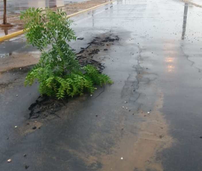 Após uma hora de chuva forte em Petrolina, parte do asfalto que fica na Avenida principal do Residencial Vivendas em Petrolina está cedendo