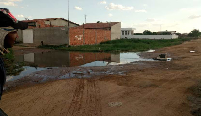 A moradora informa que não consegue sair da sua própria casa, devido a grande quantidade de água suja e parada, na Avenida dos Correios, bairro Padre Cícero, próximo a Seiva do Vale Blog Edenevaldo Alves