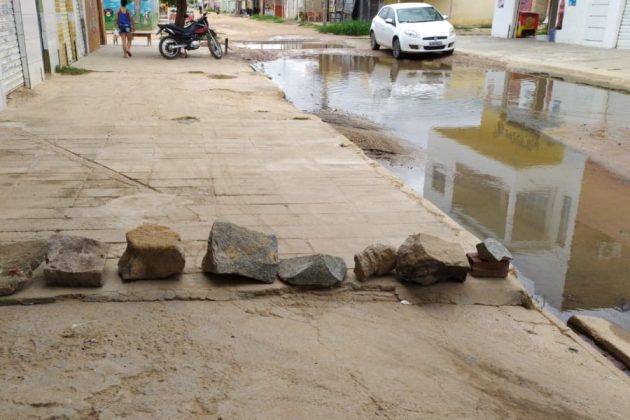 Os próprios moradores colocaram as pedras nas calçadas depois que as últimas chuvas alagaram a avenida, que não tem pavimentação. “Com as chuvas, ficou essa lagoa aqui na frente. Aí o pessoal de carro e de moto não respeita a gente como morador. Eles estão transitando por cima das calçadas em alta velocidade. E esse é o motivo da gente colocar essas pedras, pra evitar acidentes”, justificou a moradora Márcia Pedreira.