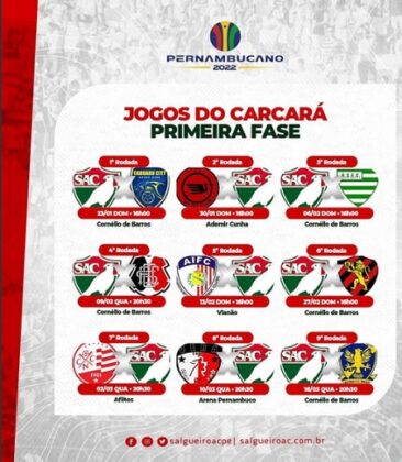 Conforme o cronograma, o Salgueiro Atlético Clube estreia no dia 23 de janeiro contra o Caruaru City, a partir das 16h, no Estádio Cornélio de Barros (Salgueirão). O jogo contará com presença da torcida, um diferencial para ajudar o time nessa nova temporada.