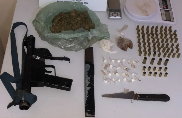 Uma metralhadora e porções de maconha, crack e cocaína foram apreendidas na tarde de segunda-feira (26), na cidade de Ourolândia, no norte da Bahia.