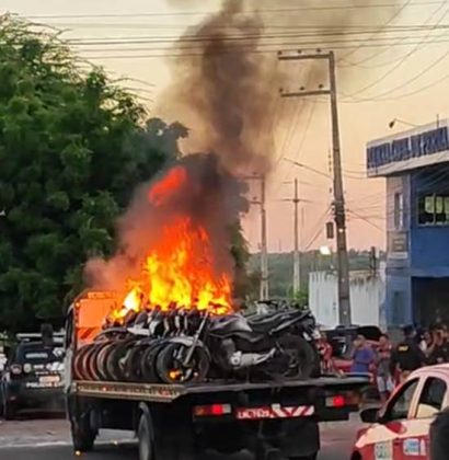 O incidente aconteceu em frente à Delegacia de Polícia Civil (PC) local, chamando a atenção de muitos curiosos. As chamas se espalharam rápido, danificando as demais motos e o próprio caminhão da PRF.