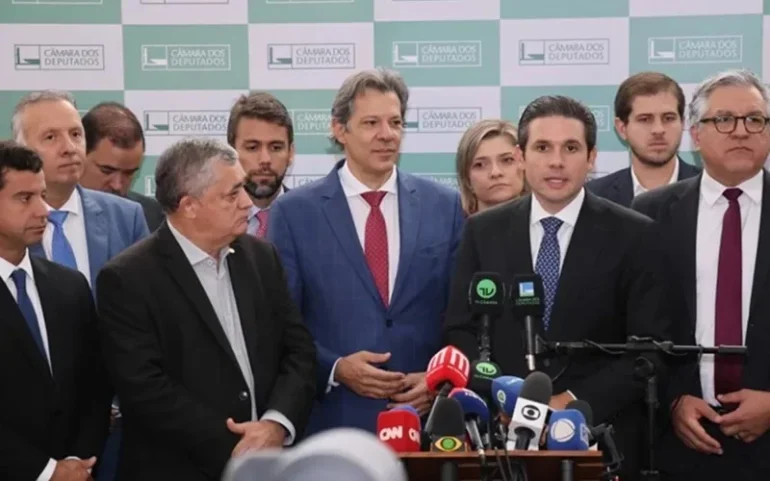 Haddad reforçou que o Brasil está tomando medidas coordenadas para enfrentar a ameaça das tarifas de 50% propostas pelo governo Trump, reiterando a importância de unidade nacional e engajamento diplomático. “É hora de unidade do país na defesa do interesse nacional”.