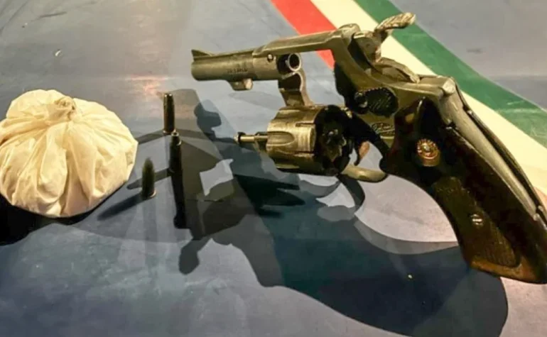 Um suspeito fugiu ao perceber a chegada da PM. Foram encontrados um Revólver calibre 22; três munições Intactas calibre 22 e 76 gramas de cocaína.