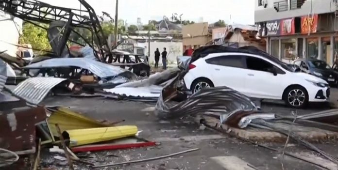 Moradores relataram que o tornado chegou com temporal, vento forte e granizo. Segundo a Defesa Civil, cerca de 80% da cidade ficou destruída, com destelhamentos e colapso estrutural de algumas construções.