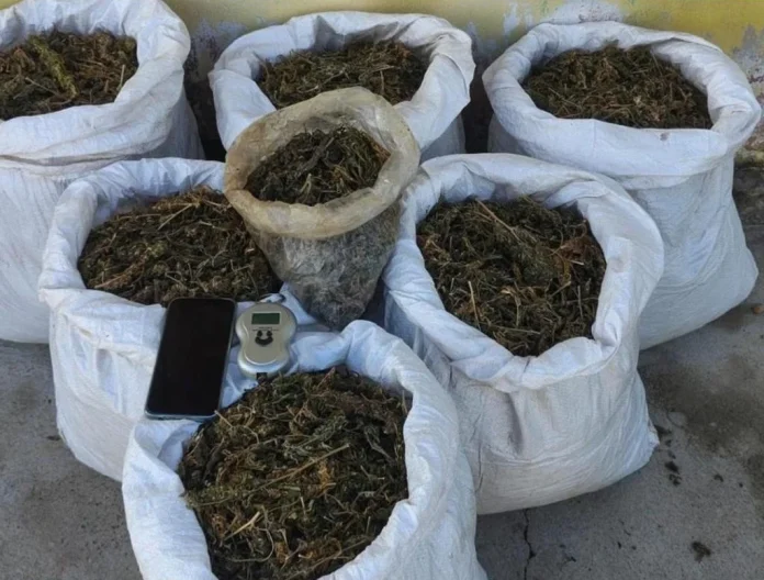 • 21 kg de erva seca, aparentando ser maconha, distribuídos em seis sacos;